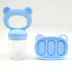 Offre Spéciale mignon dessin animé ours bébé fruits mangeoire et Mini congélateur grignoter plateau Combo lait maternel Popsicle moules pour le soulagement du refroidissement